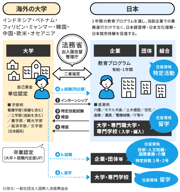 インターンシップビザもその一つで、在留資格「特定活動(告示9号)」によってンターンシップ活動を外国人に認めています。